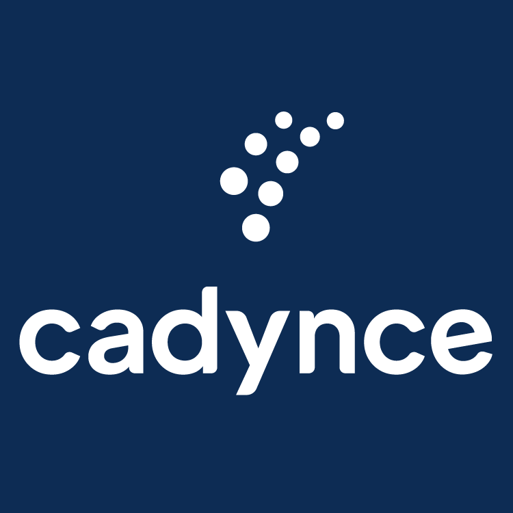 Cadynce logo in reversed white on a blue background saved in the SVG format. *Recommended format.